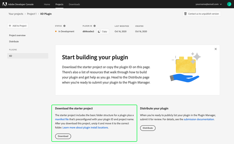 To begin development for your plugin, locate the Download the starter project section and select Download.