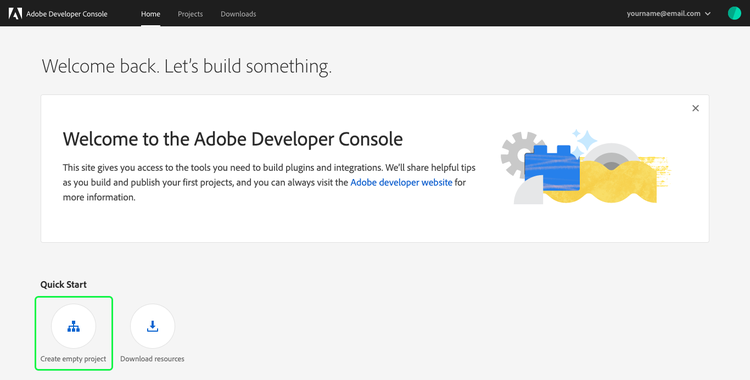 To create a plugin, begin by selecting the quick start button to Create an empty project on the Console home screen.