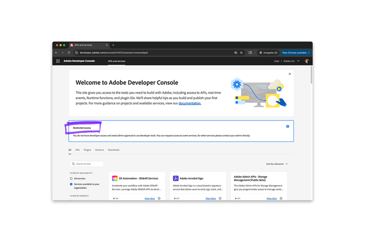 Restricted Access to the Adobe Developer Console?